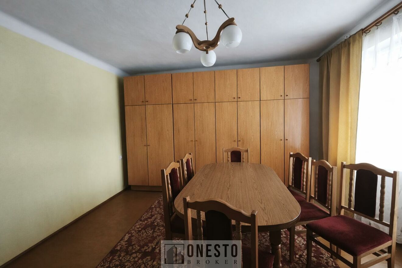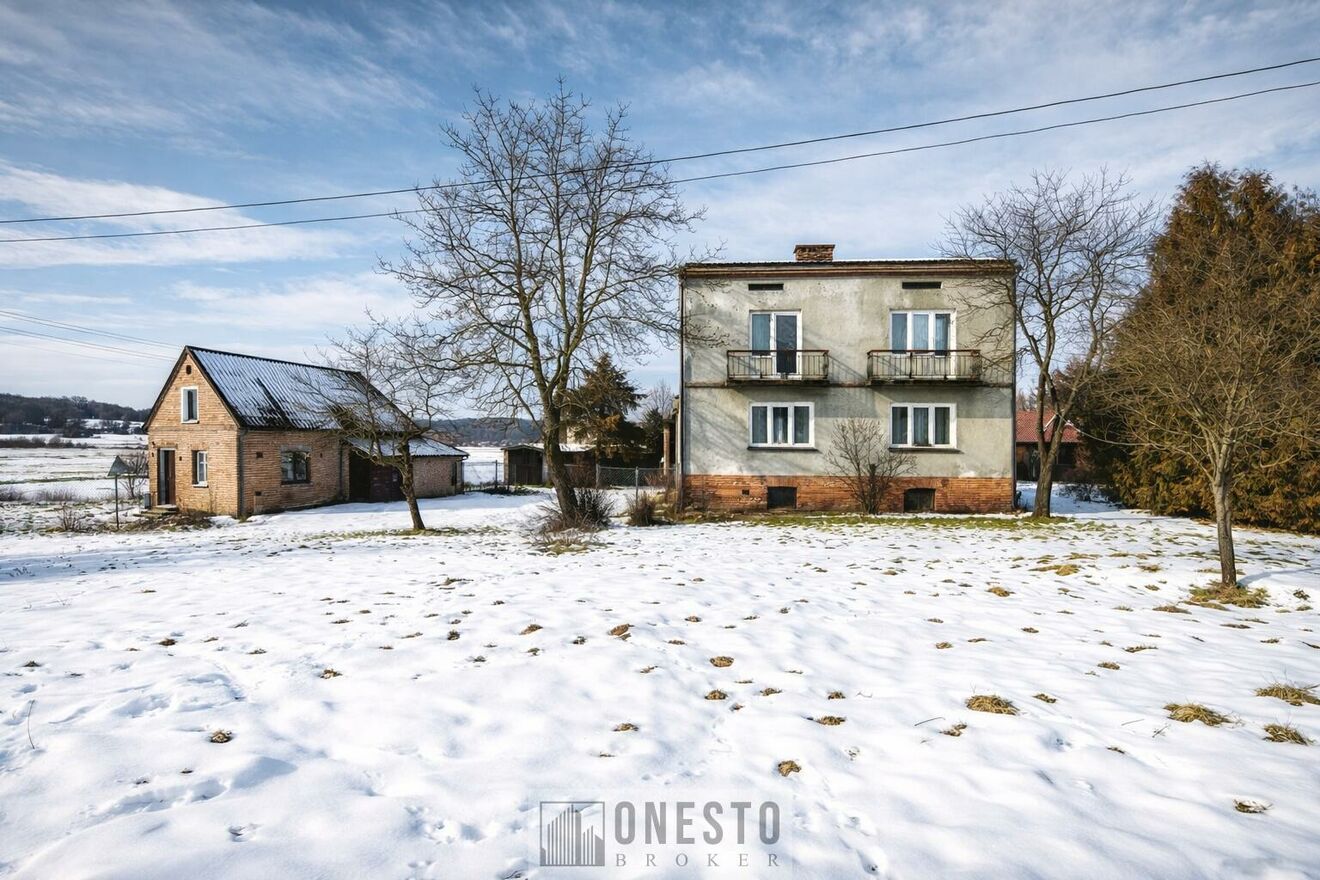 Ofertę stanowi budynek mieszkalny o powierzchni ok. 200 m2 z użytkowym podpiwniczeniem. Dom został wybudowany w 1980 r. Teren częściowo ogrodzony, porośnięty drzewami, krzewami. Dom przeznaczony do remontu. Obok domu znajdują się także budynki gospodarcze do zagospodarowania wg uznania. Wejście do domu zlokalizowane jest przez zewnętrzne schody, dzięki czemu można stworzyć z domu dwa niezależne mieszkania z niezależnymi wejściami. Działka nadaje się szczególnie pod budowę domu jednorodzinnego ze względu na korzystne parametry geometryczne, uzbrojenie terenu i lokalne walory środowiskowe. Alternatywnie można rozważyć wykorzystanie nieruchomości pod małą działalność usługową lub inwestycję w infrastrukturę rekreacyjną.